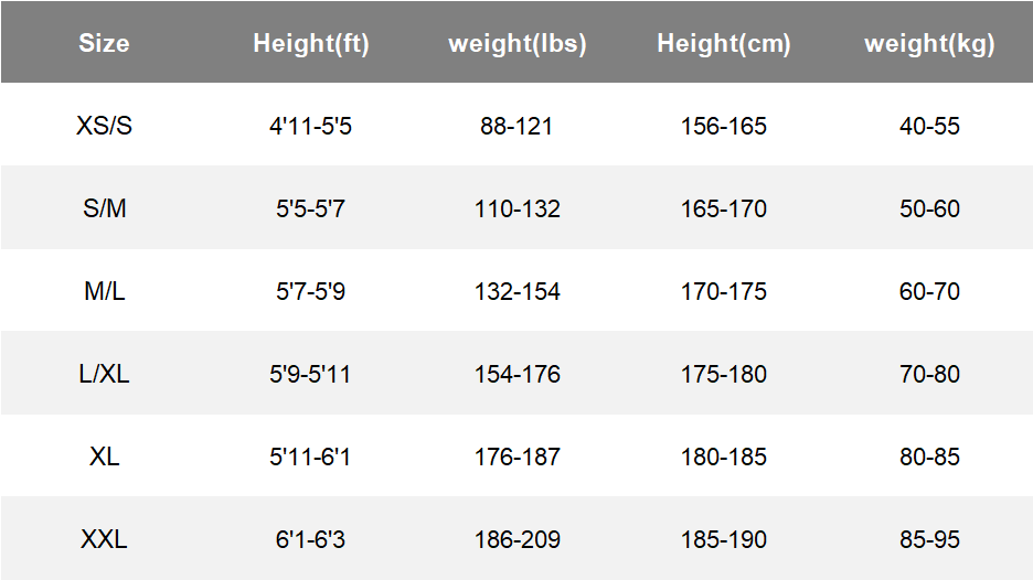 Unisex Size Chart (Tops)